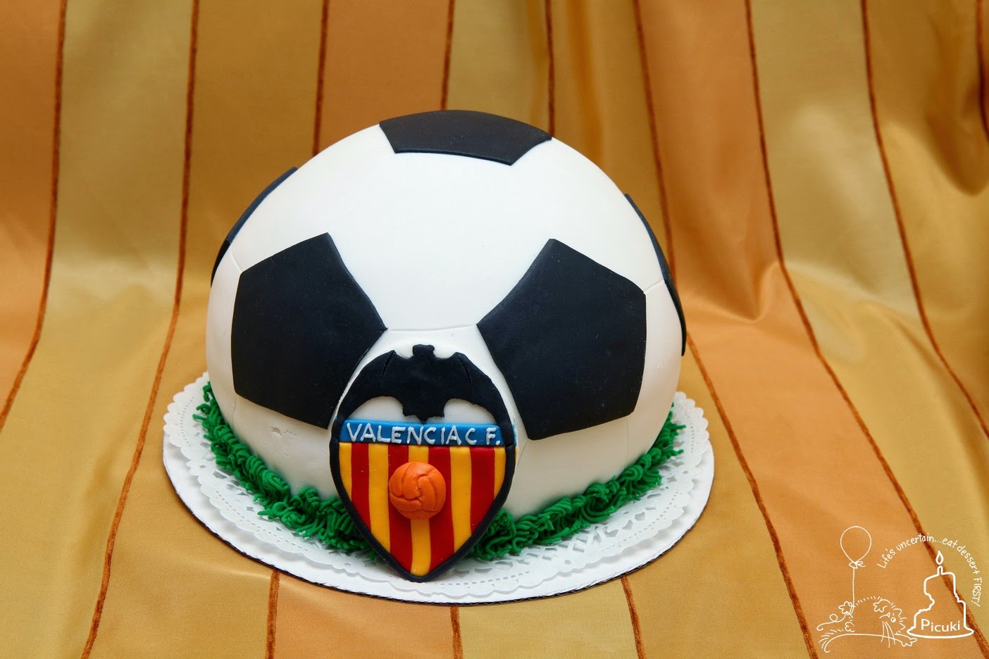 A focilabda torta recept egy a sok desszertjeink egyikéből. Azért ezt találtam ki mert nagy focidrukker. A fűhöz a zöld marcipánt tegyük fokhagymanyomóba, nyomjuk ki, majd vágjuk le és helyezzük a torta. Már többször esélyes volt egy focilabda, aztán különböző okok miatt mindig elnapolódott a dolog máig.