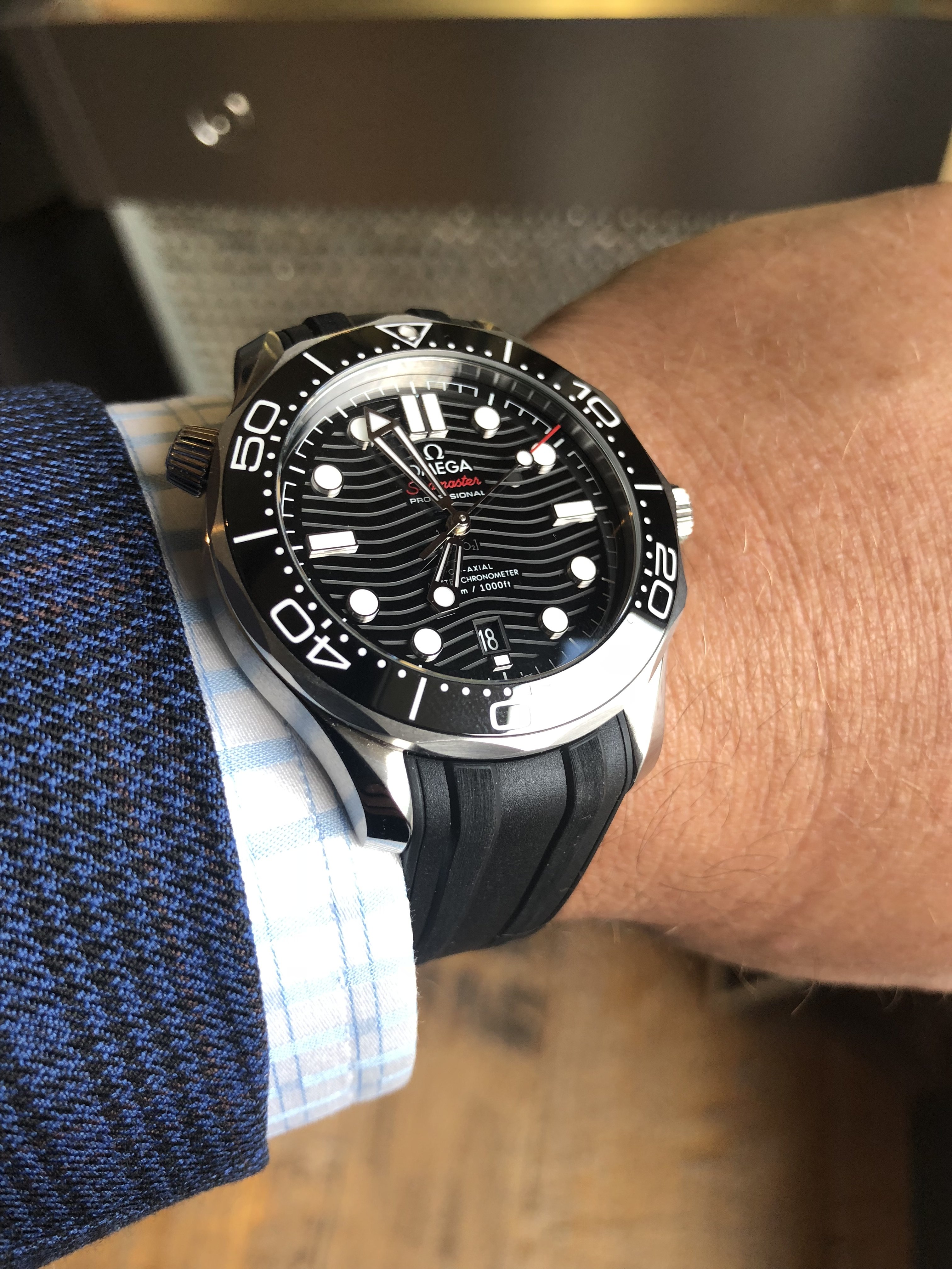 42+ Omega Seamaster 300 Chronograph On Wrist Gif. Features of this omega seamaster diver 300m chronograph include hours, minutes, small seconds, date and chronograph. The polished blue ceramic unidirectional rotating bezel is mounted on a 41.5 mm stainless steel case with a.